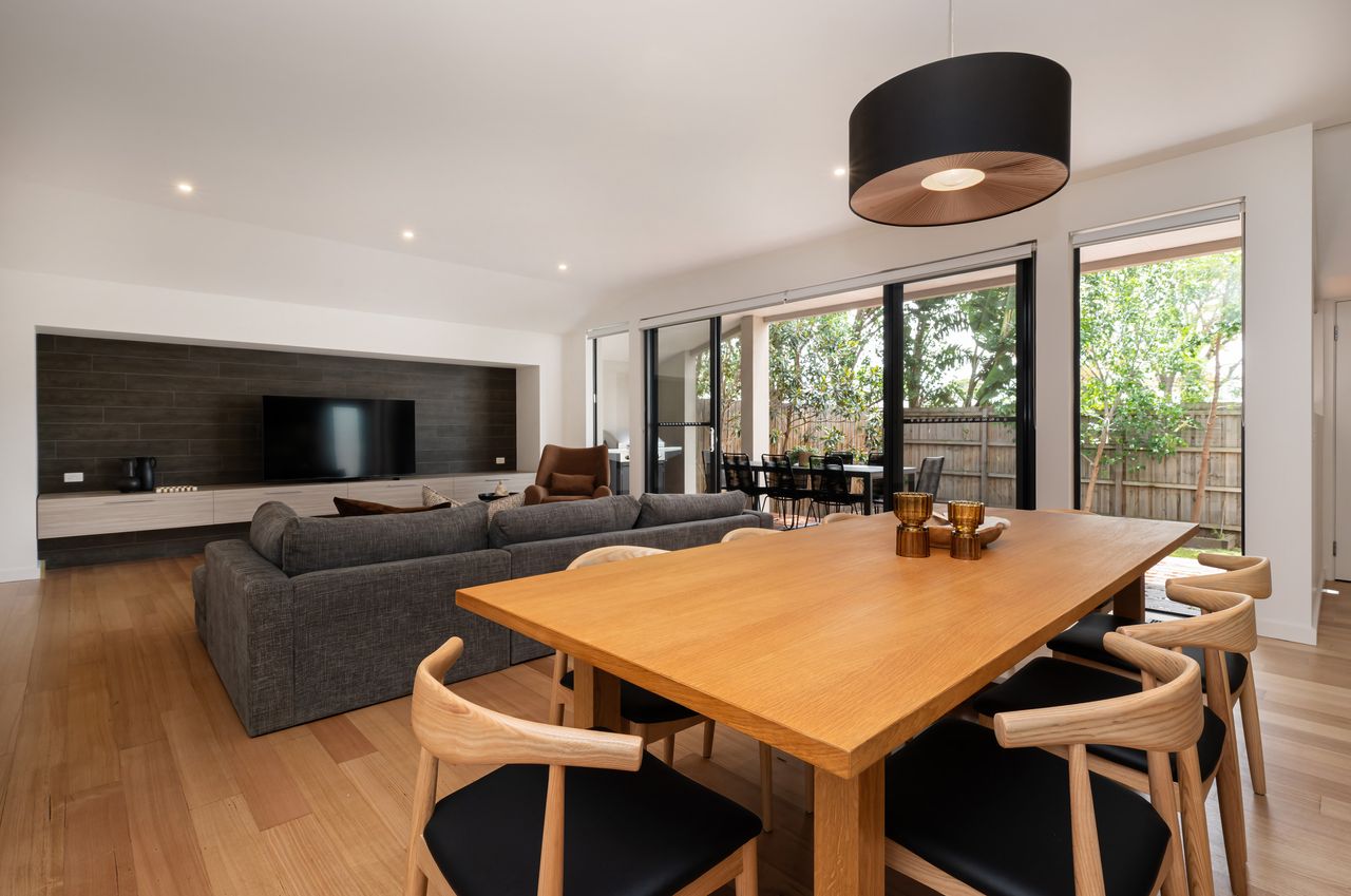 Welcome to Aura Home by the Bay, ideally set up for families looking for comfort, style, and convenience in Highett. This beautifully styled two-story home offers everything you need for a relaxing stay, including a fully equipped kitchen, Smart TV, WiFi, laundry with a washing machine and dryer and a fully enclosed courtyard. There is a secure double garage for our guests use and driveway for additional off street parking.