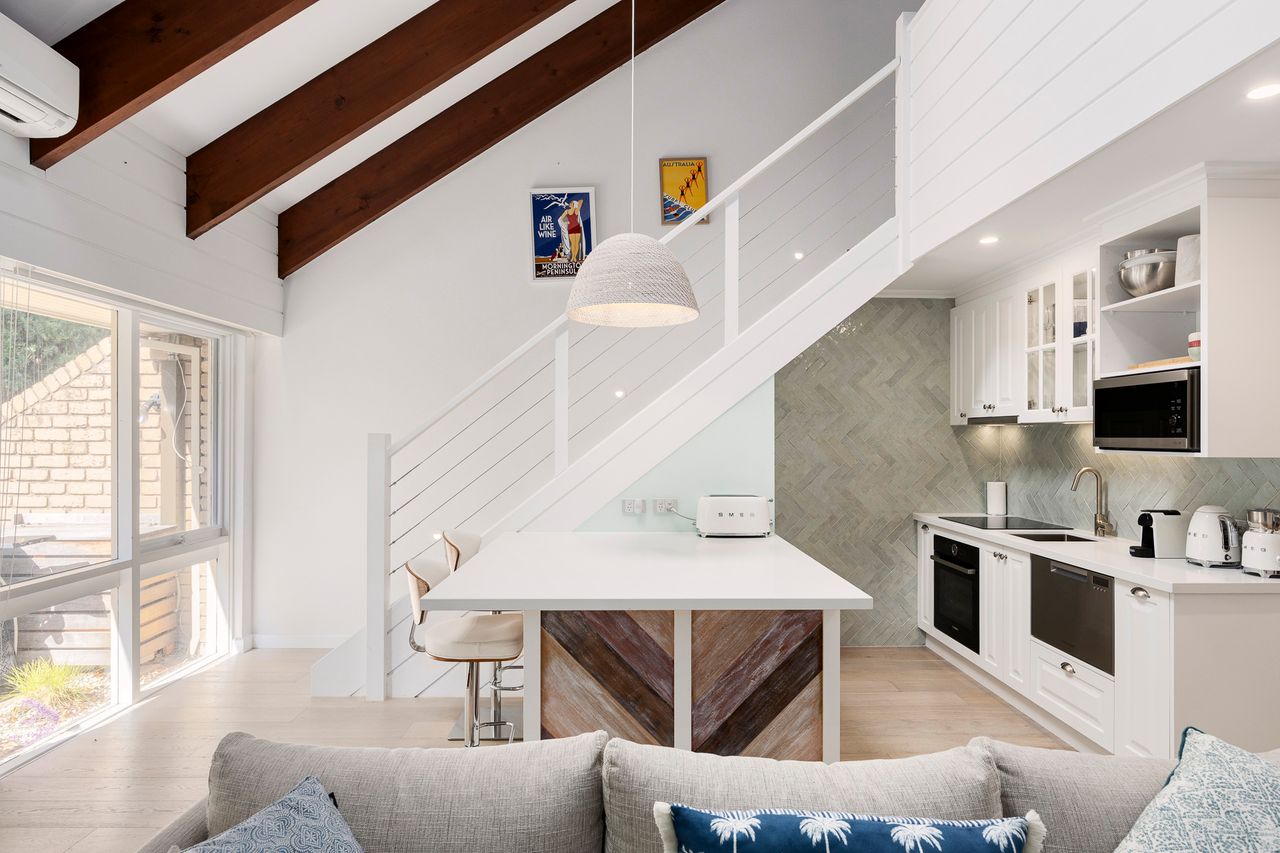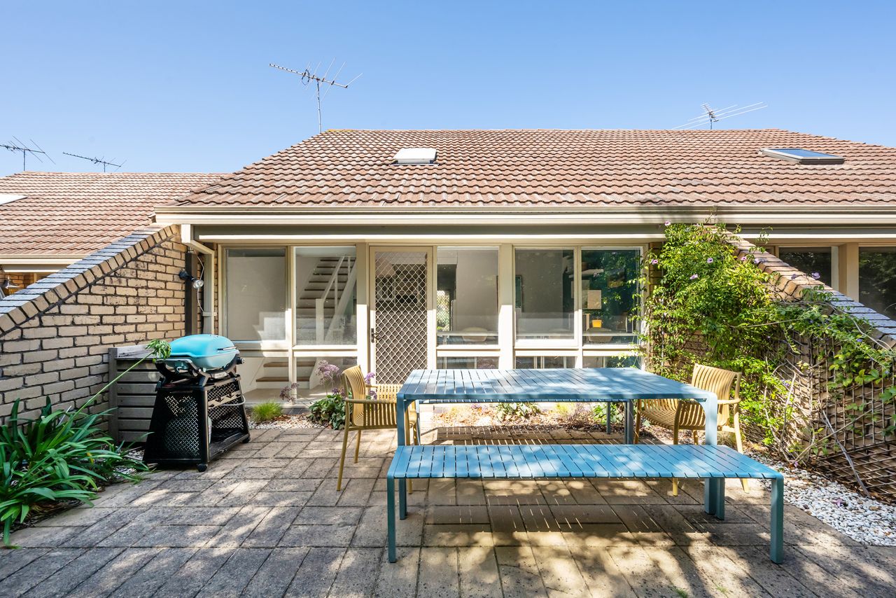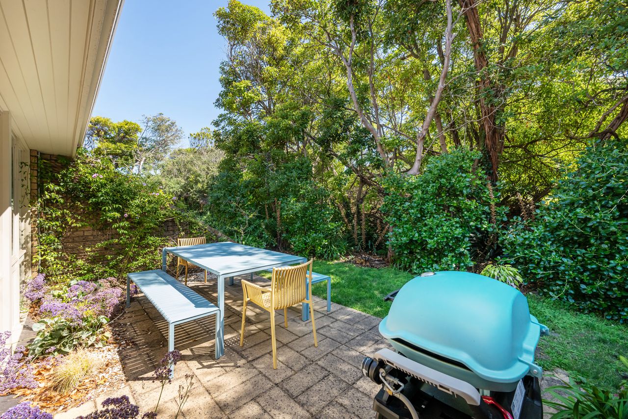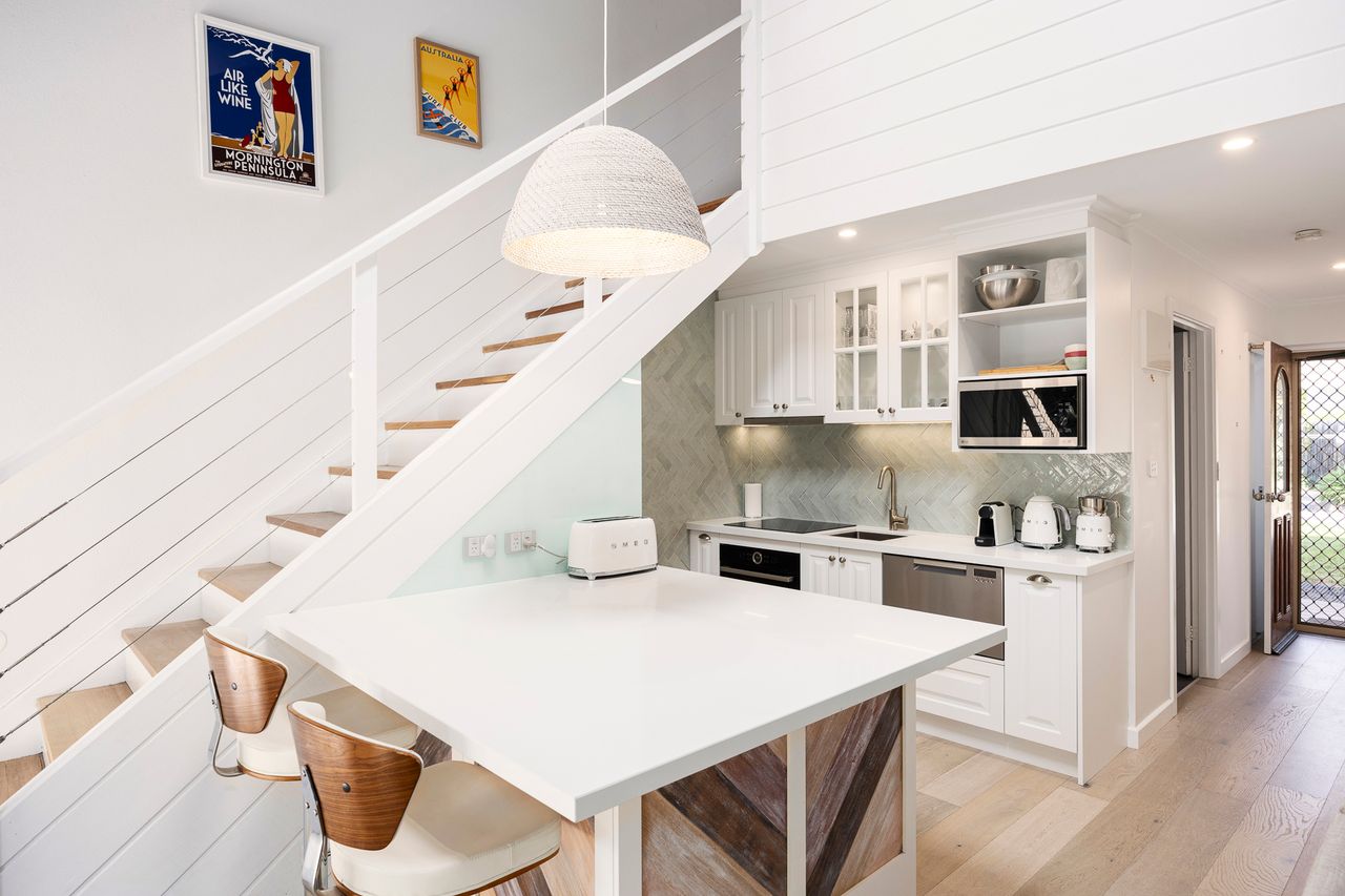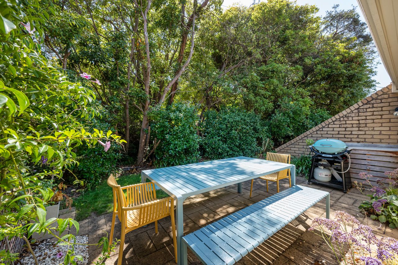 Welcome to the delightful "Captain Sandy" a holiday rental nestled in the heart of Blairgowrie, a stones-throw from Blairgowrie front beach on the Mornington Peninsula. A light filled double story town house styled to perfection and will accommodate up to 7 guests with off-street parking for 2 cars, one undercover. The kitchen has modern appliances, is well equipped for stay-in meals and there is also a sunny back patio surrounded by trees for sunset drinks and a BBQ with your family and friends.