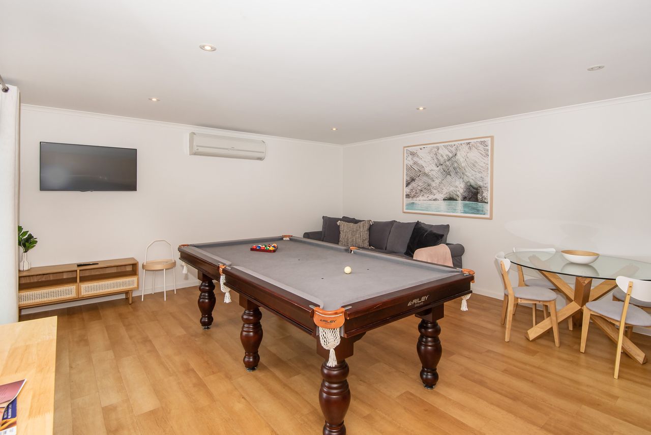 Indulge in a blissful getaway at this impeccably designed 5-bedroom, 3-bathroom retreat. Whether you envision unwinding with a glass of wine by the indoor fireplace or basking in the spa's soothing waters while soaking in the panoramic views, this property is sure to exceed expectations. Complete with a separate TV room for the kids, a table tennis and pool table, and a heated spa, there's plenty to keep every family member entertained. Embrace modern comforts with free Wi-Fi, air conditioning, and heating throughout, along with full linen provided.