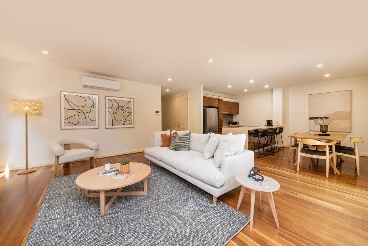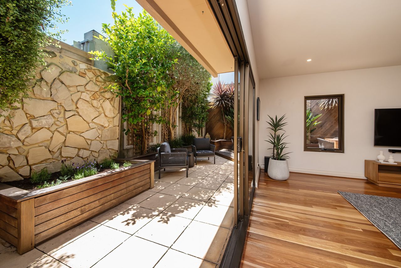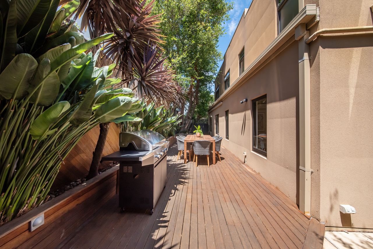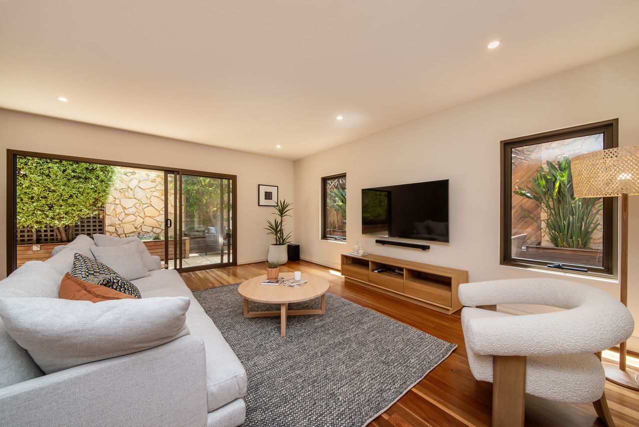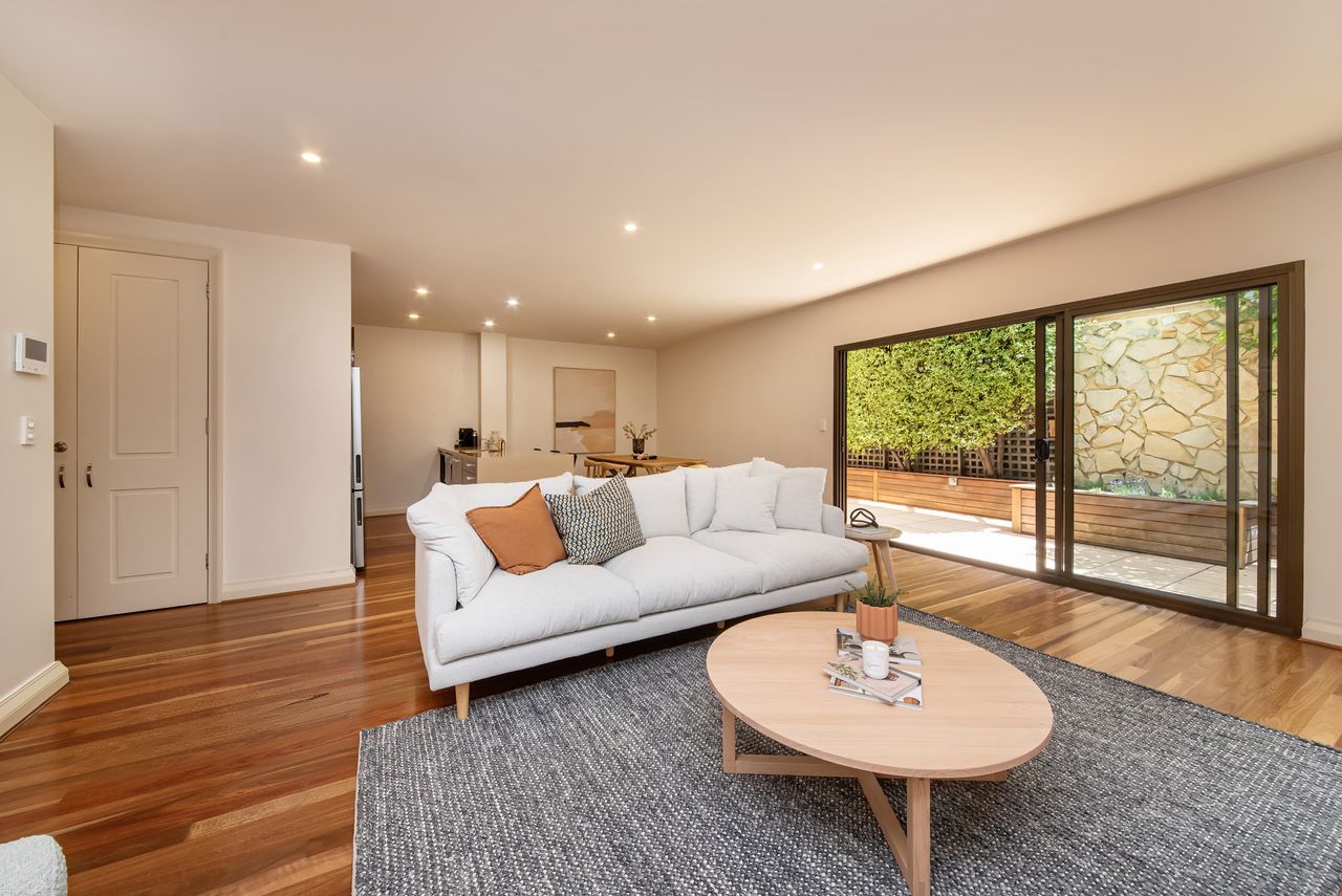 Experience the convenience of basement parking for one vehicle. The generous living areas include a smart TV and a dining area that seamlessly spills out to an exceptionally generous, wrap-around courtyard. This provides a picturesque spot to dine al fresco or simply relax in the dappled, northerly sunshine.