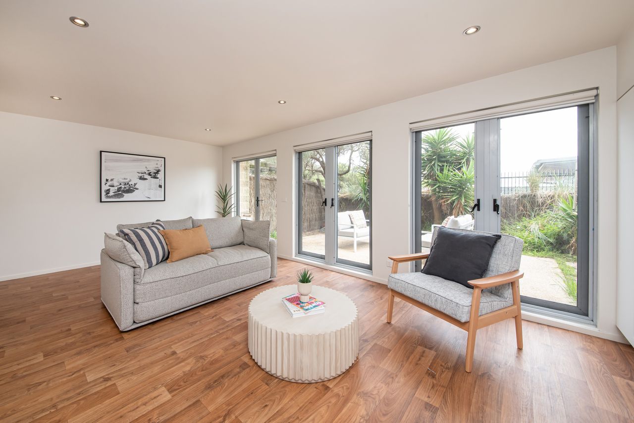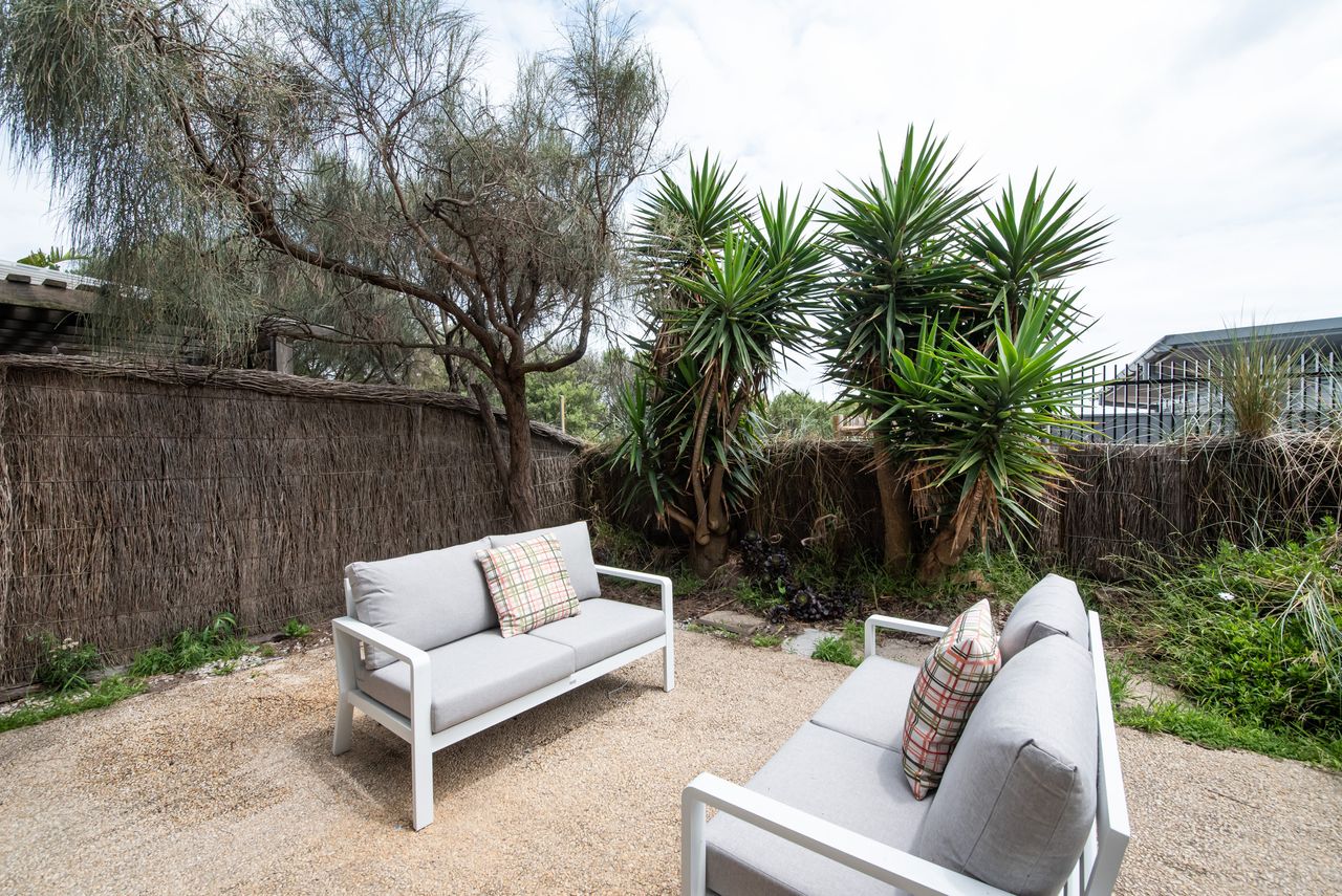 Step into this beautiful property, with three bedrooms and 2.5 bathrooms. Two bedrooms each come with king-size beds (one upstairs and one downstairs - with ensuite), while the third bedroom offers two single beds - perfect for families or small groups. With 2 living spaces, dining for 6, a private courtyard with direct beach access and parking for two cars, this property has it all. Well behaved pets are welcome with prior approval.