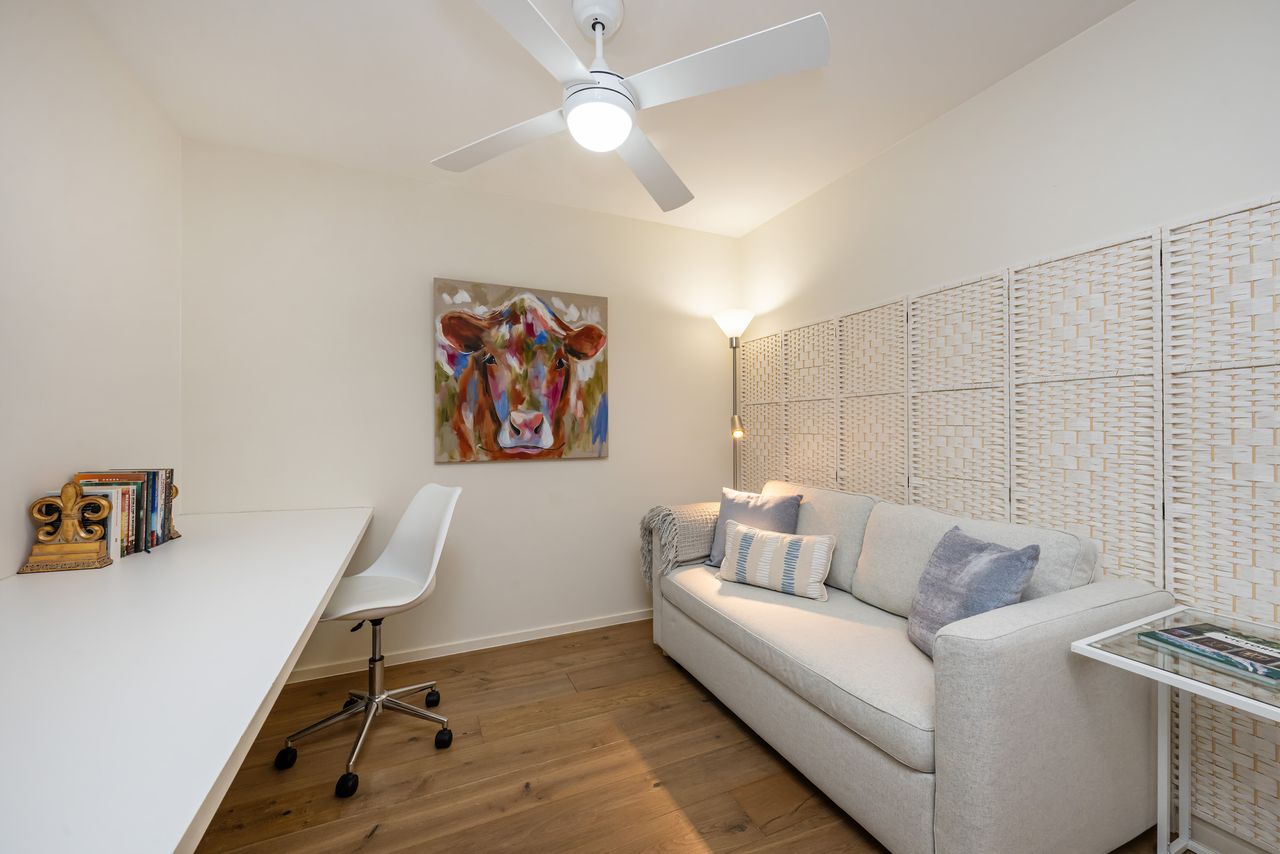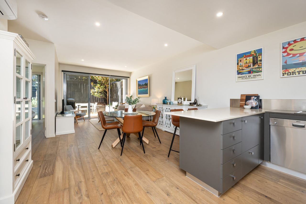 This Hampton apartment is a breath of fresh air, it's a bright and welcoming ground-floor apartment, perfect for couples or solo travellers seeking a relaxed bayside escape. Light-filled open-plan living includes a fully equipped kitchen, dining for four, and a comfortable lounge area. A dedicated desk makes it easy to work from home, while the small private yard offers a sunny spot to unwind.