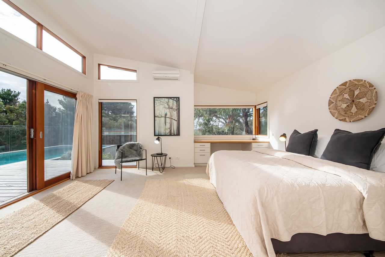 At Long View in Red Hill, indulgence is part of daily life - take a refreshing dip in the gas-heated or solar heated swimming pool or unwind next to the crackling fire pit under the stars (Mornington Peninsula Shire Council / CFA guidelines must be adhered to). The elevated balcony offers a vantage point for spectacular views.