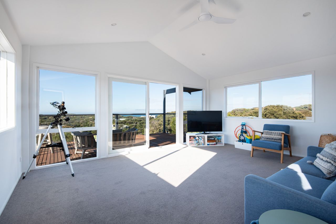 Indulge in the coastal allure of this two-story beach house, featuring stunning panoramic ocean views, a heated pool, and a gas-heated spa. Nestled in a tranquil cul-de-sac in Rye's back beach precinct, this modern retreat is perfect for a family beach getaway. This stunning 3 bedroom home enjoys elevated vistas from the rolling sand dunes to Bass Strait and beyond.