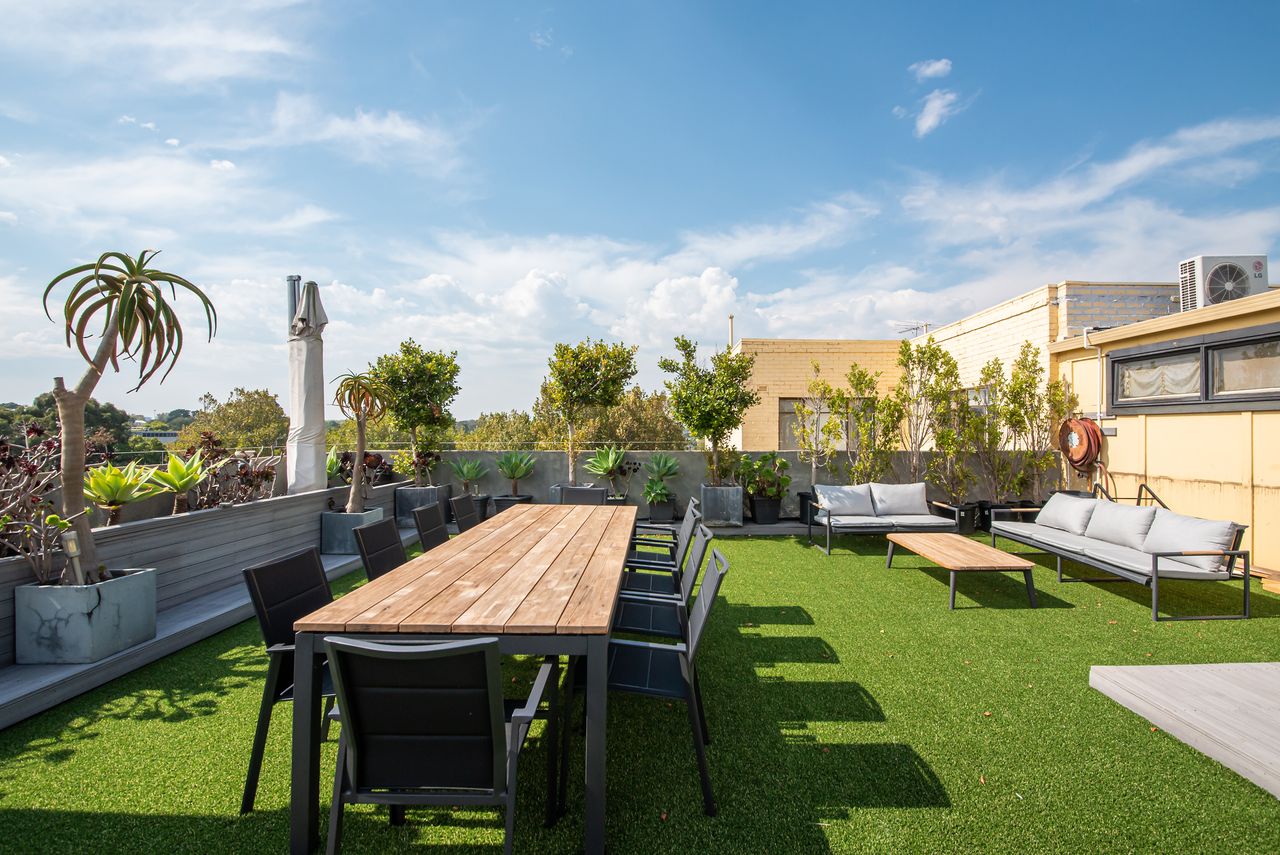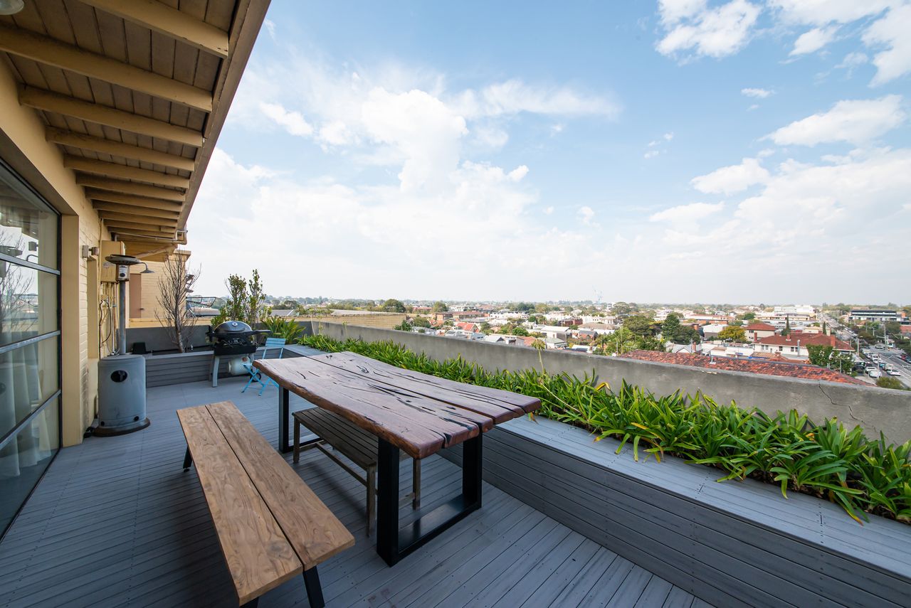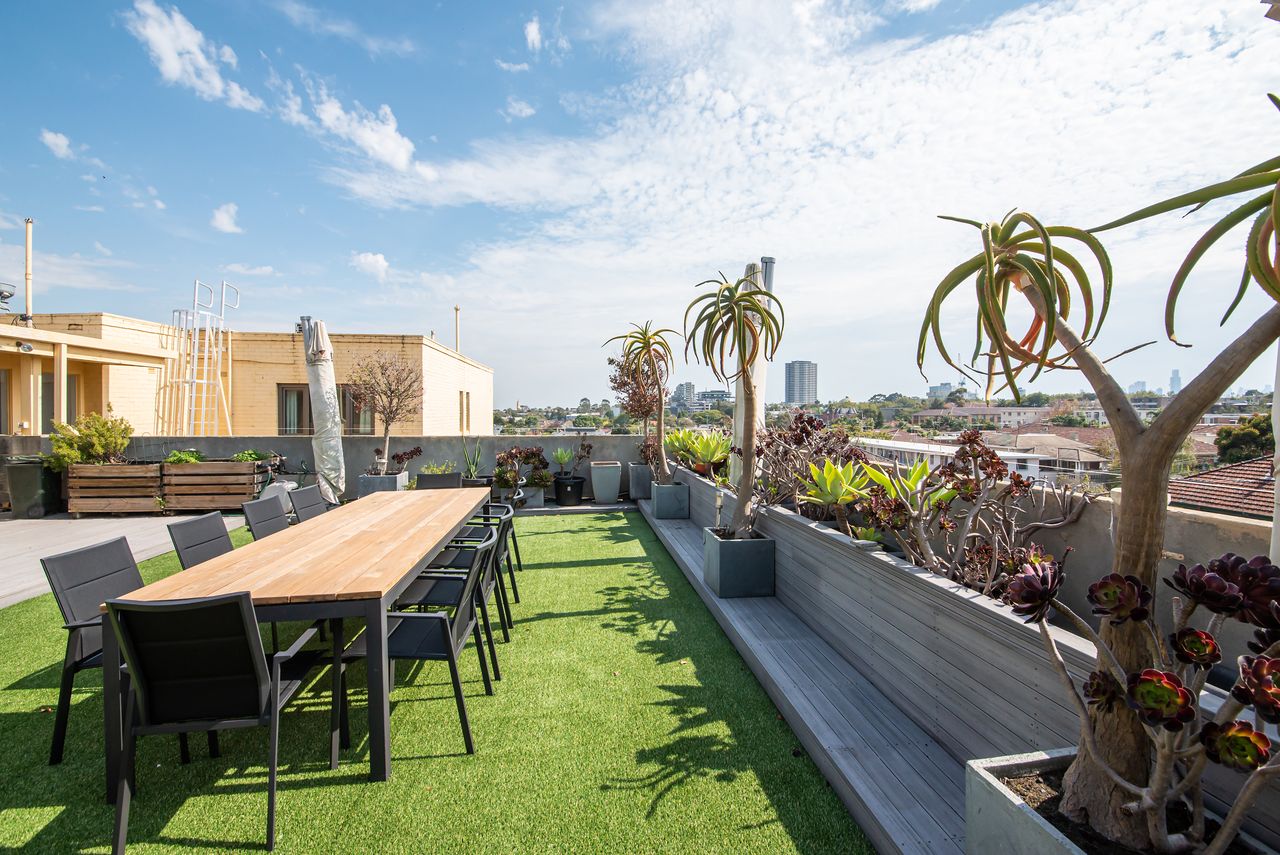 Experience luxury at its finest in this stylish penthouse apartment, where comfort, sophistication and style are combined to create the ultimate getaway. This beautifully appointed retreat boasts stunning views of the city skyline from a stunning approx. 10 x 10 meter north-facing rooftop with city views, or breathtaking glimpses of Port Phillip Bay and views across the Mornington Peninsula and Dandenong Ranges from the southern balcony.