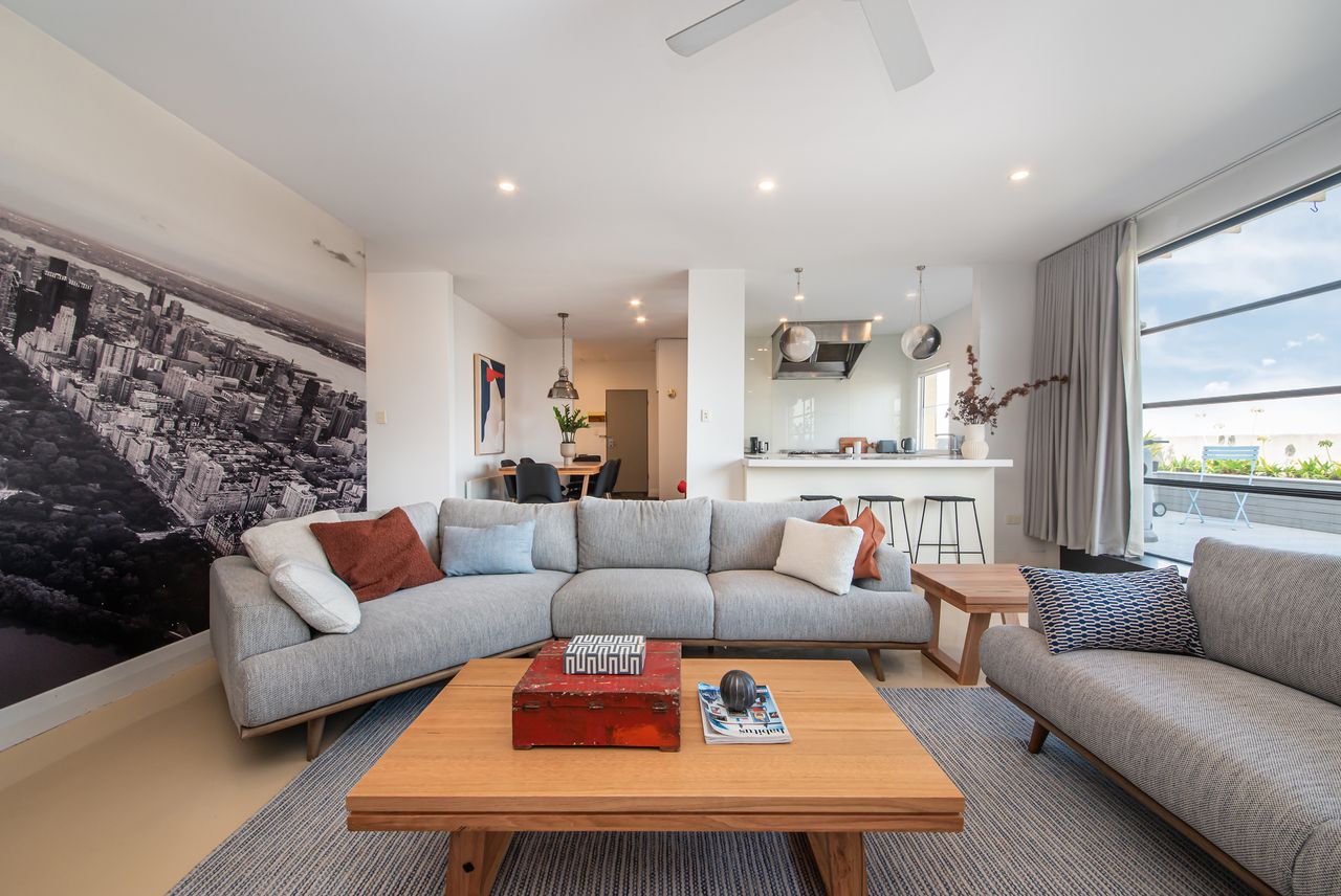 Decorated with high-end furnishings and finishes throughout, every detail has been carefully chosen to create an atmosphere of contemporary indulgence. The open-plan living/dining area is designed for relaxation, with plush sofas, large flat-screen TV and an elegant coffee table that invites you to put your feet up and unwind – all soaked in natural light from the expansive windows.