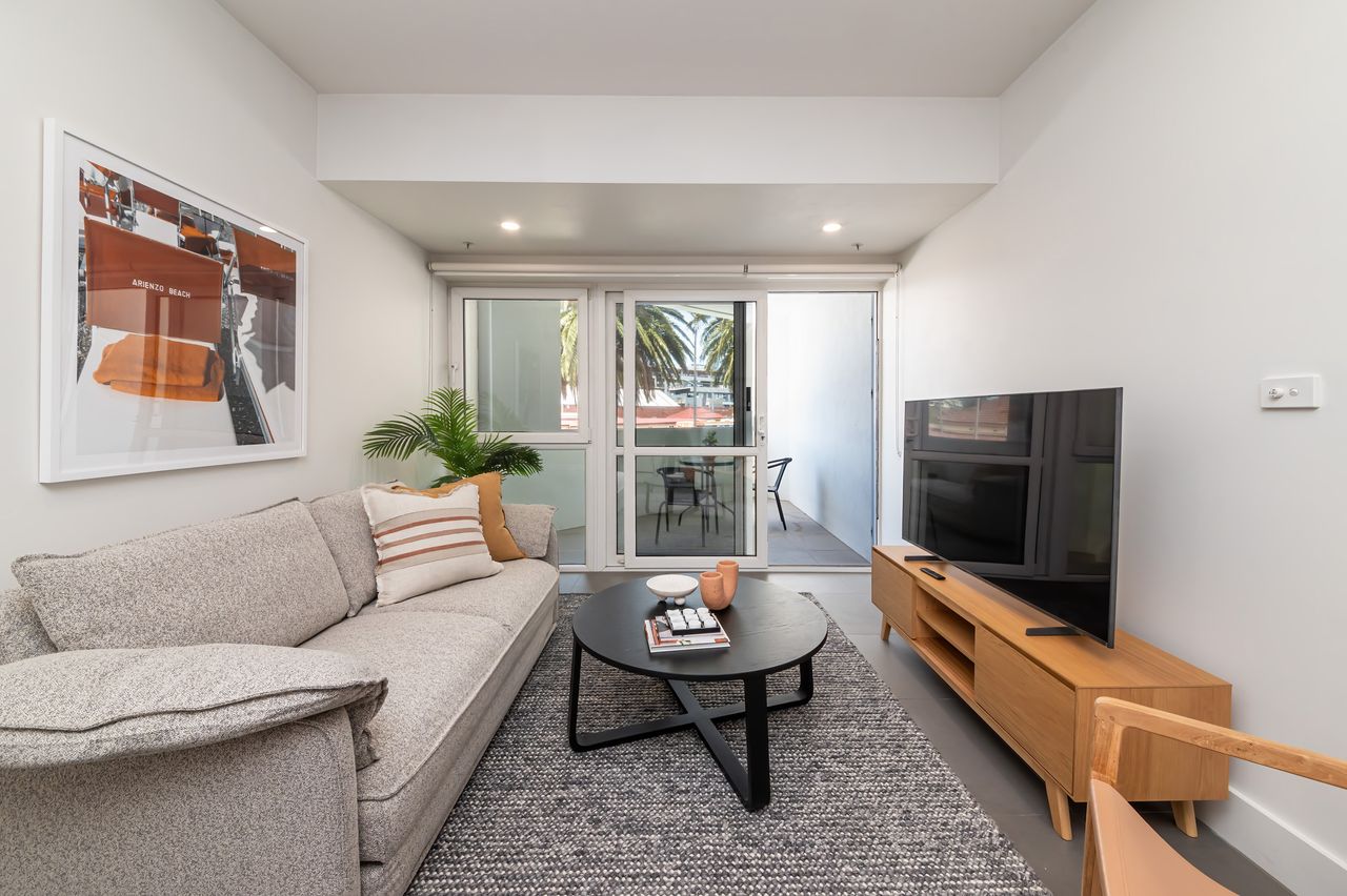 Inside, this beautifully designed apartment features a spacious bedroom, a modern bathroom, and an open-plan living area that seamlessly connects to a private balcony. Soak in the town square views of Sandringham and relax in your own peaceful oasis.