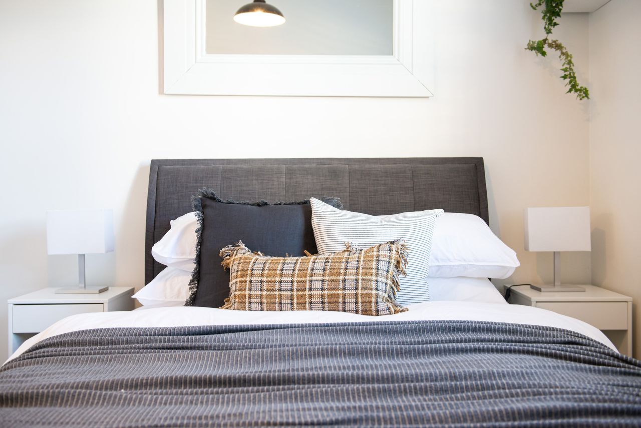 Bedroom One: Queen bed with split system cooling and heating