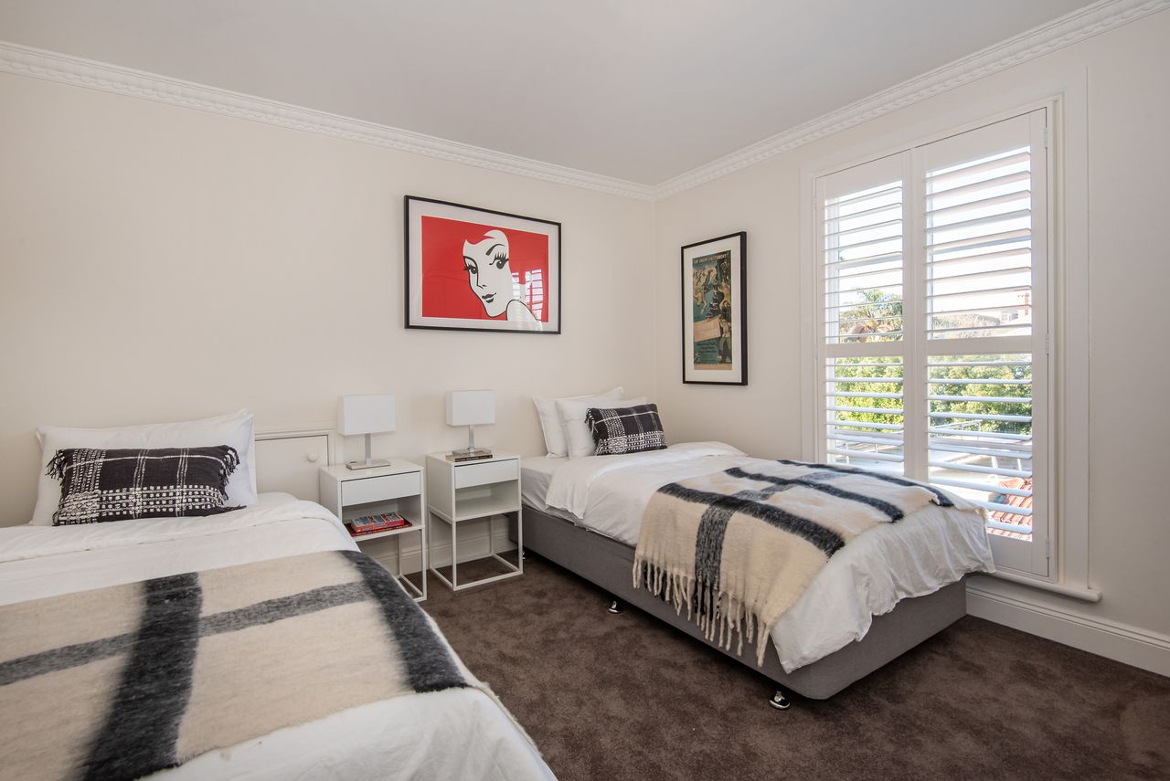 Bedroom Four (Upstairs) two king single beds with split system cooling and heating