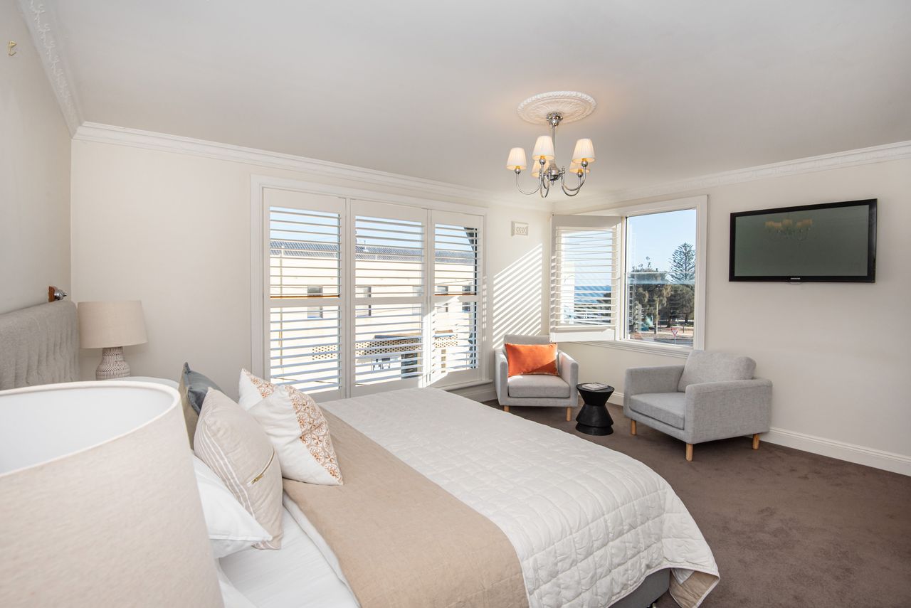 Sandy Village Retreat is full of character, elegance and style. Located around the corner from Sandringham Village and beach, you will be spoilt for choice with restaurants, cafes and bars a short stroll away. Sparkling bay views from the second floor and heated pool/spa. It really is such a special place. Plenty of room for the biggest of families with five bedrooms and two luxurious bathrooms. Two living areas, open fireplace, ducted heating, air conditioning. Wi-Fi and linen provided.