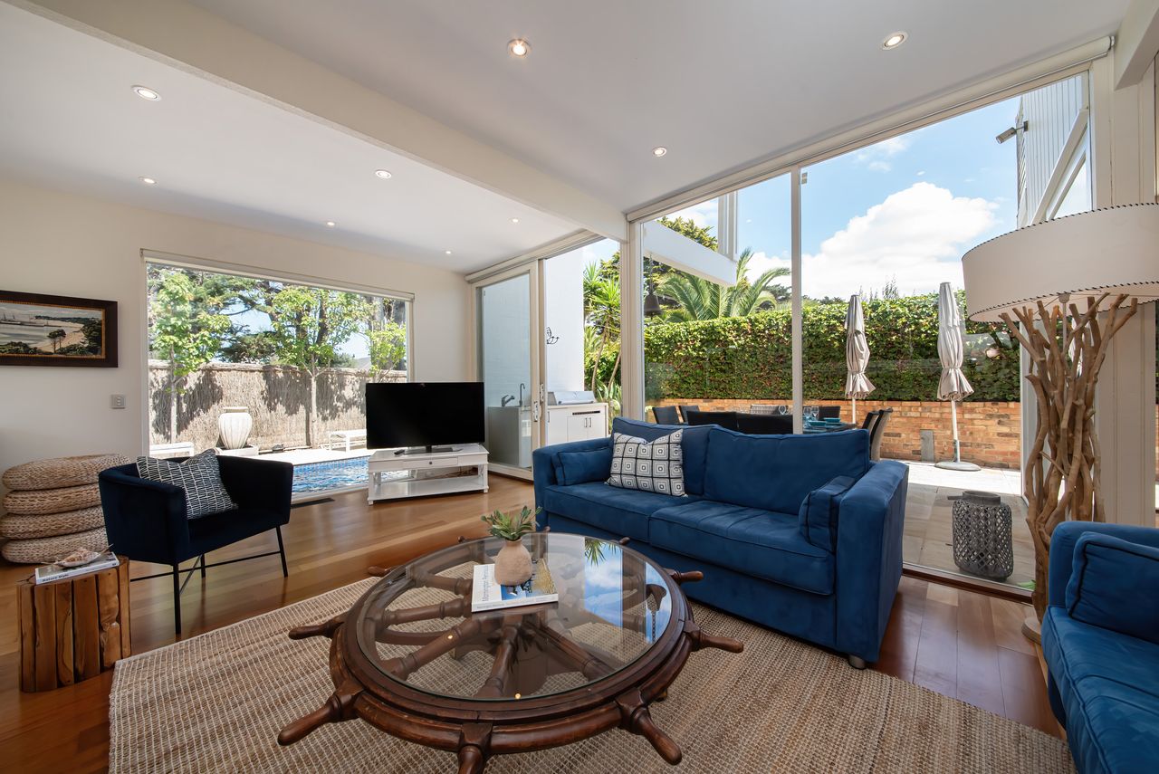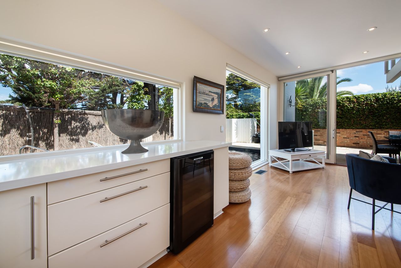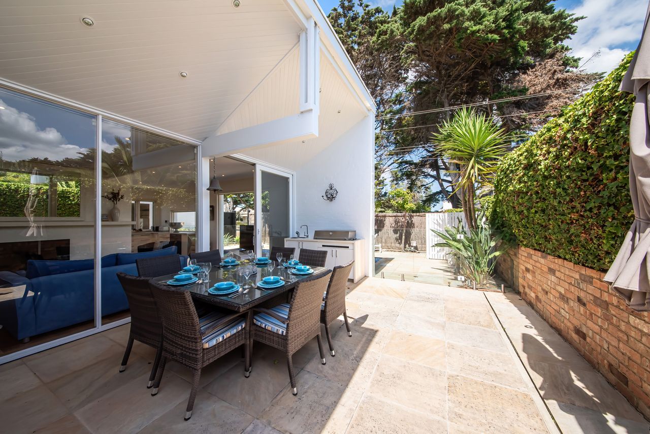 Beach, Pool, Perfect Location Skomer House Portsea is a holiday oasis a stone's throw away from the Pub, restaurants, and the famous Portsea Pier and beach. This gorgeous house has the capacity to cater to groups of up to 10 guests with private gas heated plunge pool.