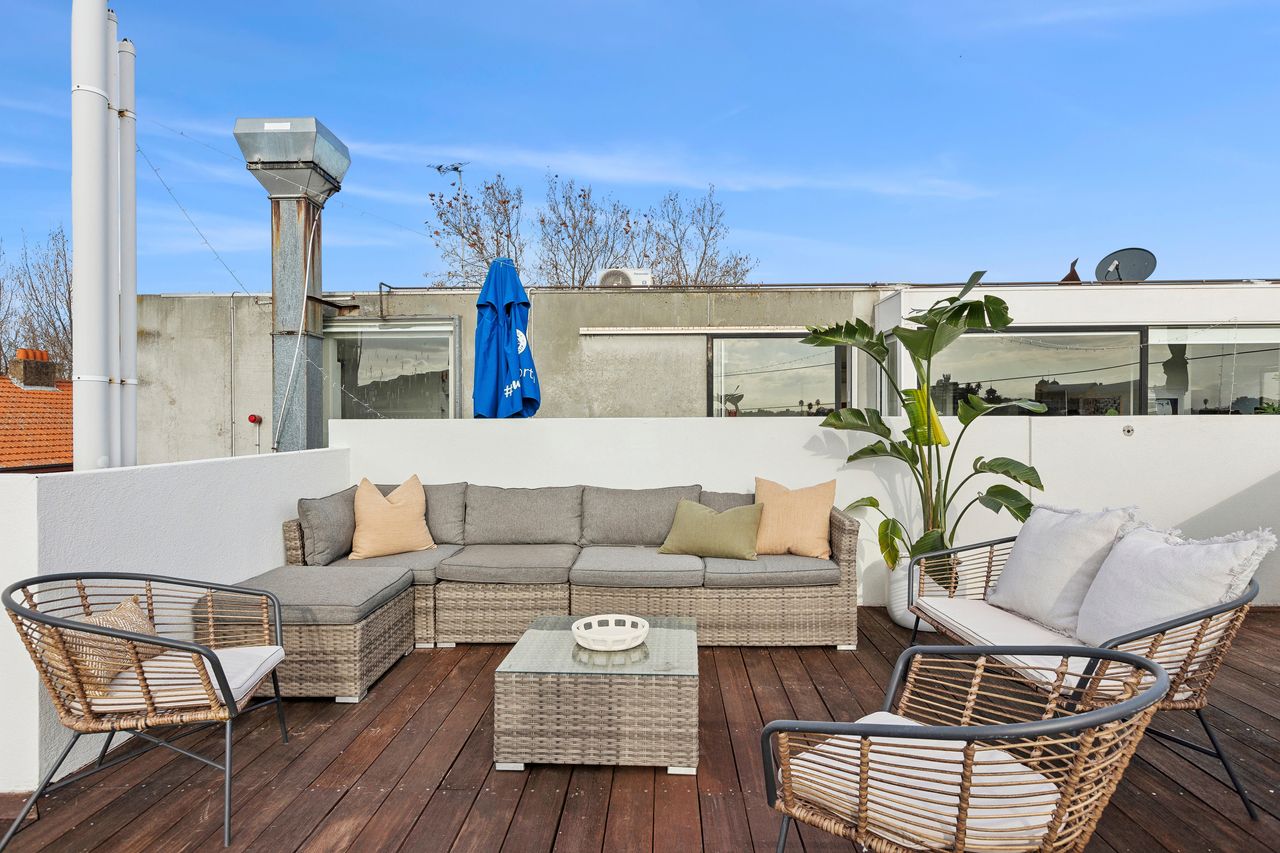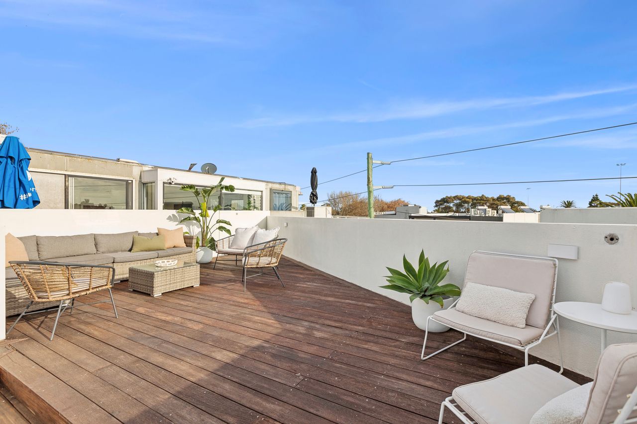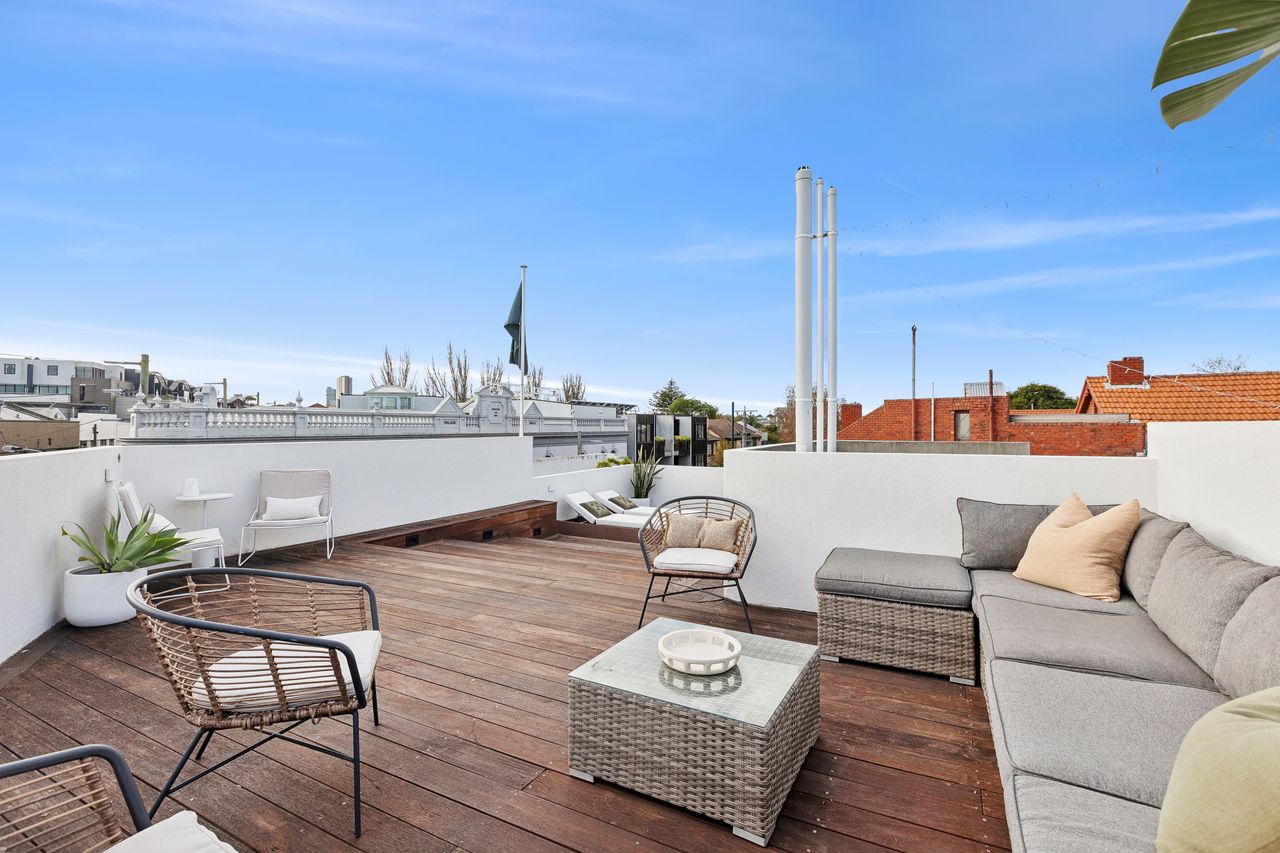 The Barkly Scene with epic rooftop retreat is a spacious 7 bedroom, 3 bathroom group stay sleeping up to 21 guests. Perfect for group getaways, the highlight is the expansive rooftop terrace for dining and relaxing, all set in the vibrant heart of St Kilda close to beaches, cafés and nightlife.