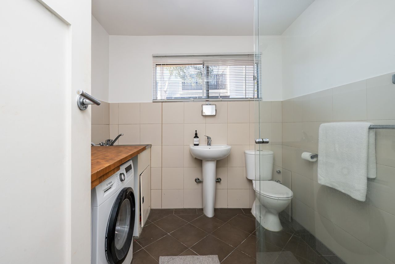 Step inside and enjoy a spacious living room featuring a study desk and smart TV — ideal for relaxing or working from home. Through a doorway, you’ll find an open-plan kitchen and dining area to cook your favourites (or reimagine some cake-shop magic! ). Combined bathroom and laundry with a separate washing machine and dryer offers everything you need for a convenient stay.