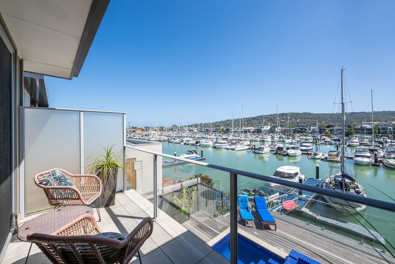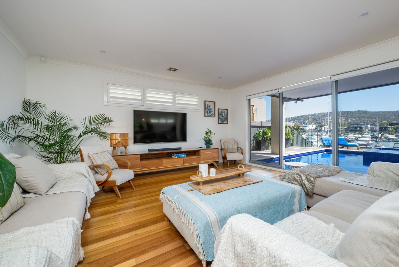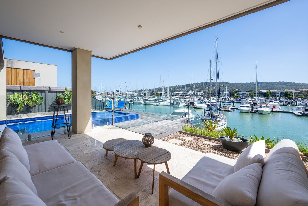 Waterside at Martha Cove — absolute marina frontage in Safety Beach. With 4 bedrooms, 3.5 bathrooms, solar heated pool and gas heated spa. Off street parking for up to 4 cars. This property is not suited to small children or pets