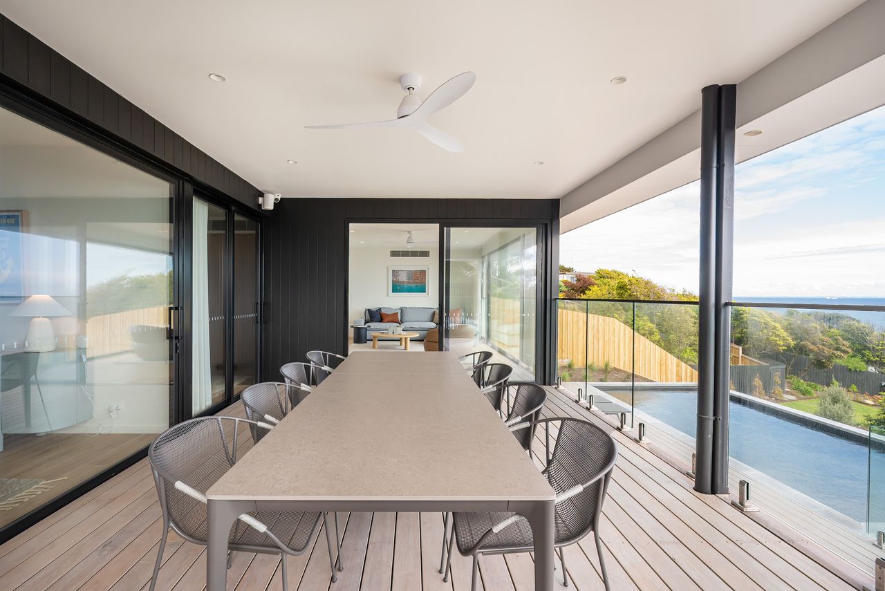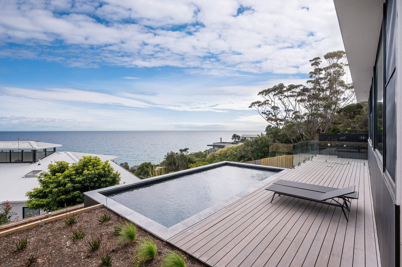 Enjoy breathtaking ocean views, an electric heated pool, and spacious living at this 4-bedroom coastal retreat. Maximum of 6 adults can stay. With multiple living zones, 2.5 bathrooms, a work-from-home space, BBQ deck, and parking for 3 cars maximum, it’s the perfect base to explore Mt Martha’s beaches, local cafés, and the best of the Mornington Peninsula.